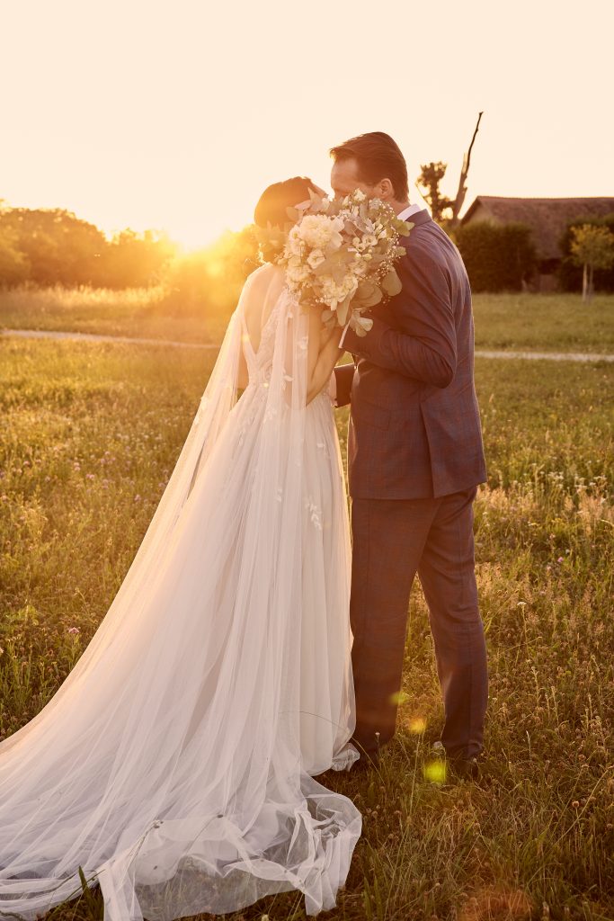 Wichtig ist uns, dass ihr euch vor der Kamera wohlfühlt, damit ihr und eure Liebsten euch die Bilder mit einem Lächeln anseht und gerne an den Tag zurückdenkt. Wir achten selbstverständlich darauf, dass Schleier und Kleid, sowie der Blumenstrauß immer richtig positioniert sind. Außerdem geben wir euch gerne Tipps, wie ihr auf den Bildern miteinander posen könnt, um harmonische Bilder zu erhalten.